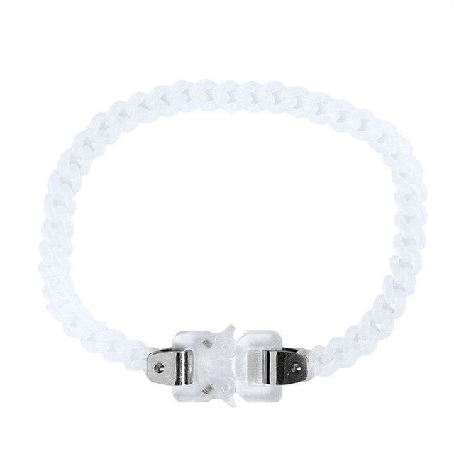 Get the minimalist look with ALYX and their famous roller coaster buckle. The ALYX transparent Buckle Chain features a unique see through design that is ultra modern and on trend right now. This is the stylish necklace you need for streetwear fits.