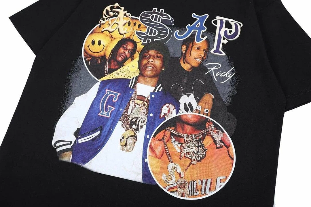 Asap Rocky is a fashion iconic and you can be too with a Asap Rocky Homage T-shirt. The design features photos of Lord Pretty Flacko with a unique font saying ASAP! This is a must have for the Testing rapper!