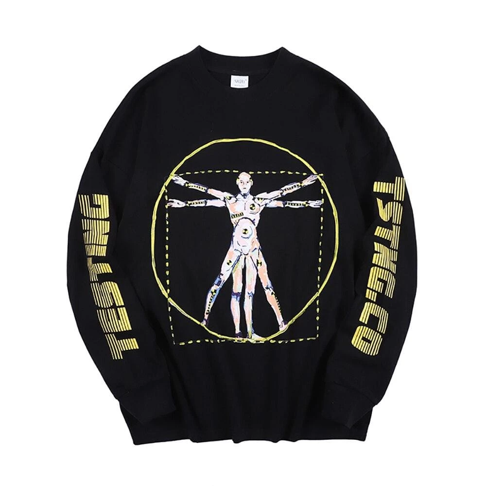 Secure the Asap Rocky look with the Testing Vitruvian Long Sleeve T-Shirt! Inspired by Asap Rocky’s 2018 Album the tee features Testing branding and imagery that has been heavily influenced by Da Vinci famous vitruvian man drawing.ย