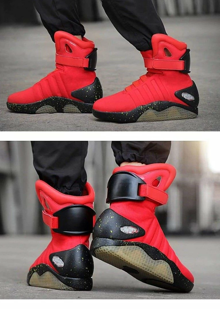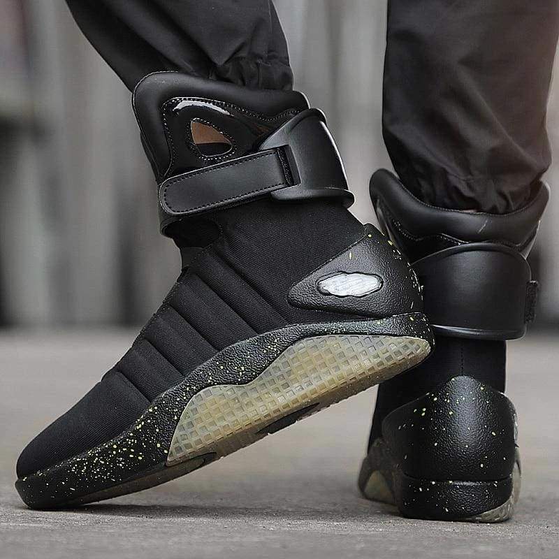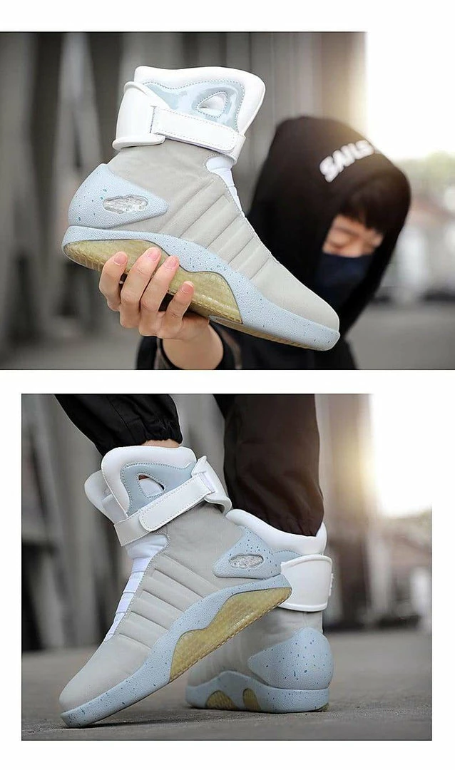 Time to head back to the future and get the Marty Mcfly look with the iconic Mag sneakers! The large boot like shoes feature self lacing Technology with the colored lights in the heel. Guaranteed to give you that futuristic vibe. US Sizing.ย