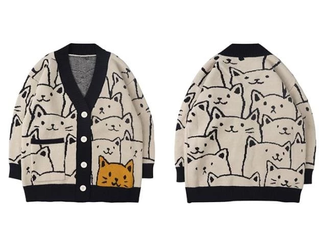 SKU: streetgarm-6642621579363 Categories: Hoodies & Sweatshirts, Hoodies & Sweatshirts, MEN'S, NEW, NEW IN, WOMEN'S Tag: Cartoon Cat Print Knitted Cardigan