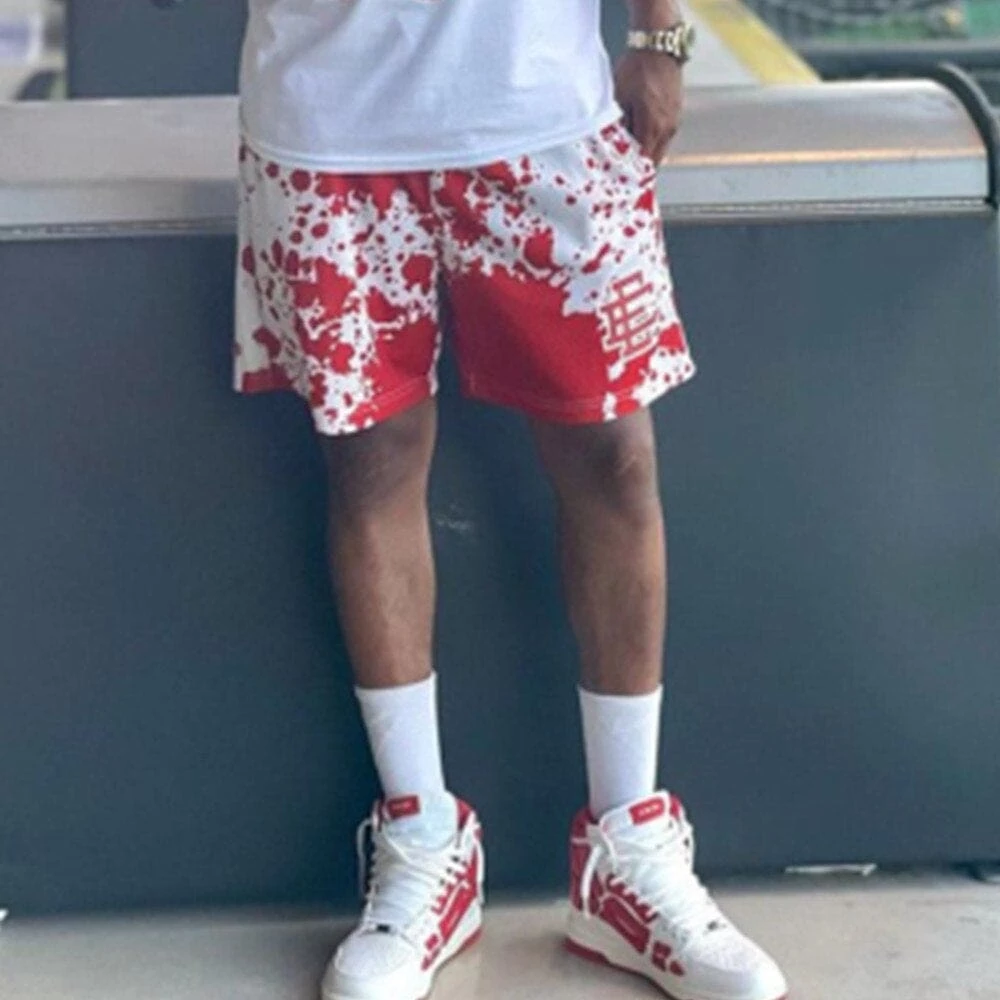 Get a fresh comfortable look with our Eric Emanuel Paint Spill Shorts. The EE basic short design on these shorts is a paint splatter pattern in a variety of color options. These fit with the Eric Emanuel style of bold colors with a relaxed mesh fit focused on daily comfort wear while still giving you that streetwear look.ย