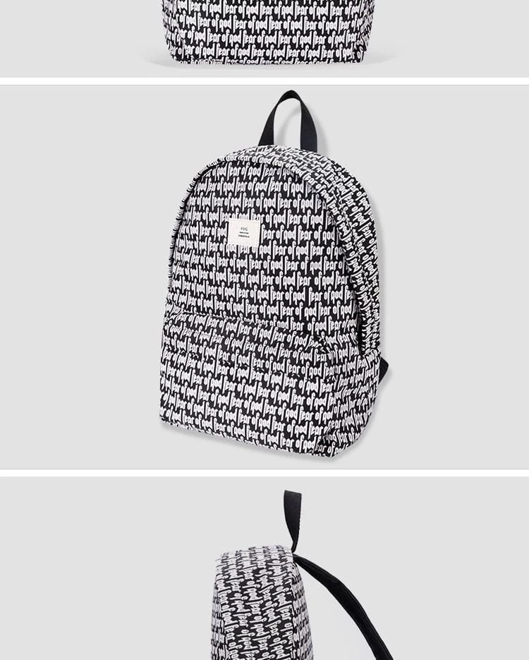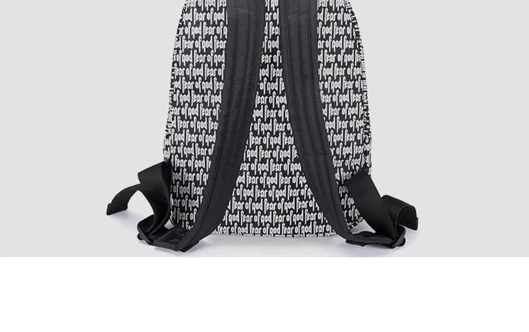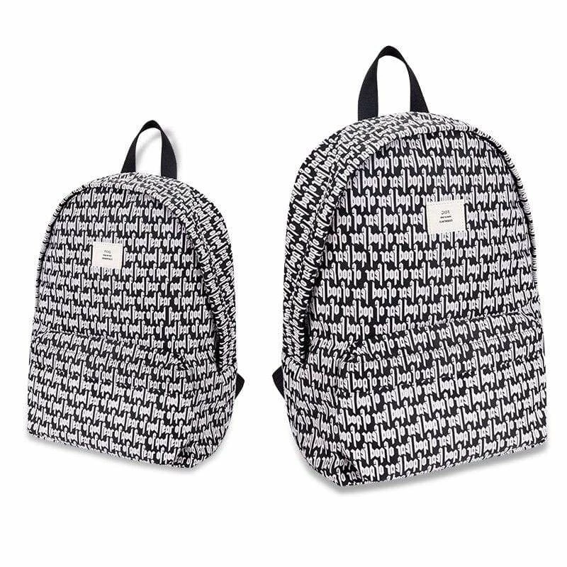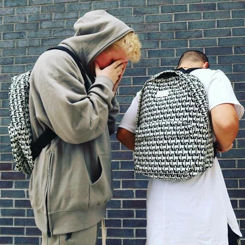 Fear Of God Monogram Backpack features the famous repeat pattern covering the front of the bag giving it that classy Black and White look! The backpack features two compartments a small front pocket and main opening perfect for your laptop!
