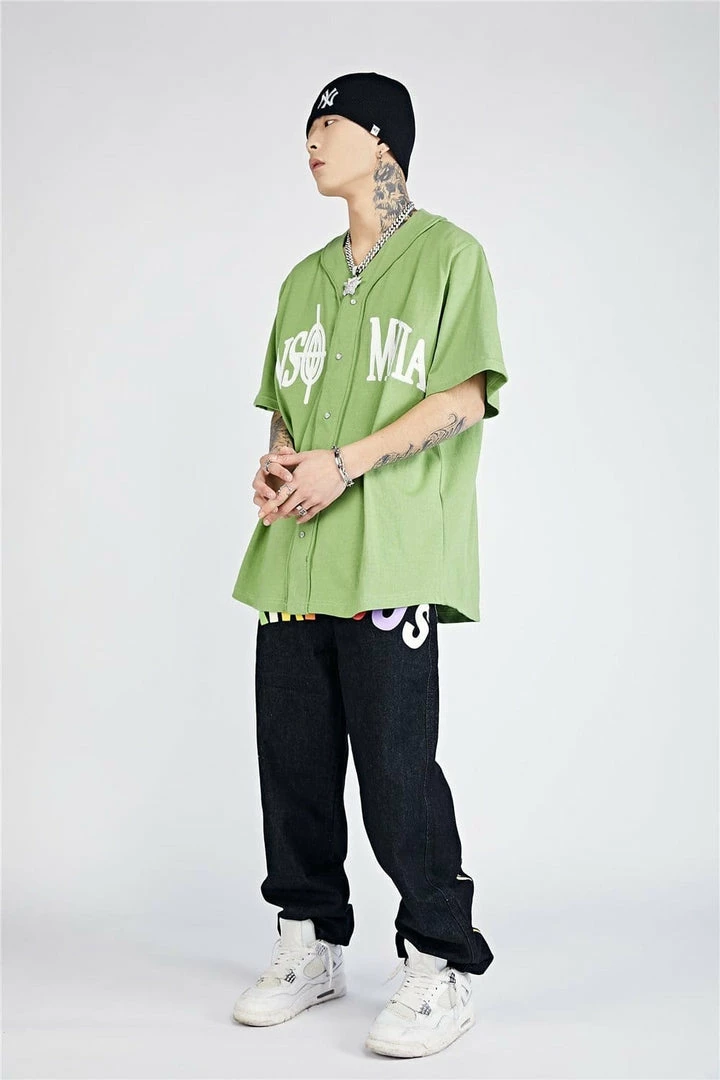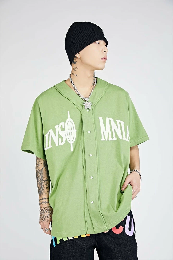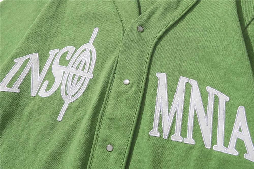 Get the baseball shirt look with a unique streetwear design with our Insomnia Printed Baseball Shirt! The design features custom embroidery with Zodiac signs on the front and back available in a black and green colorway.
