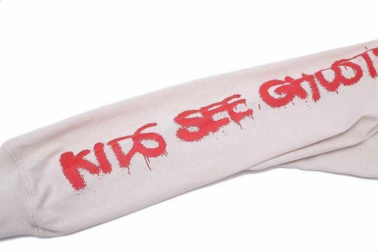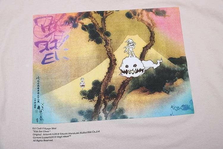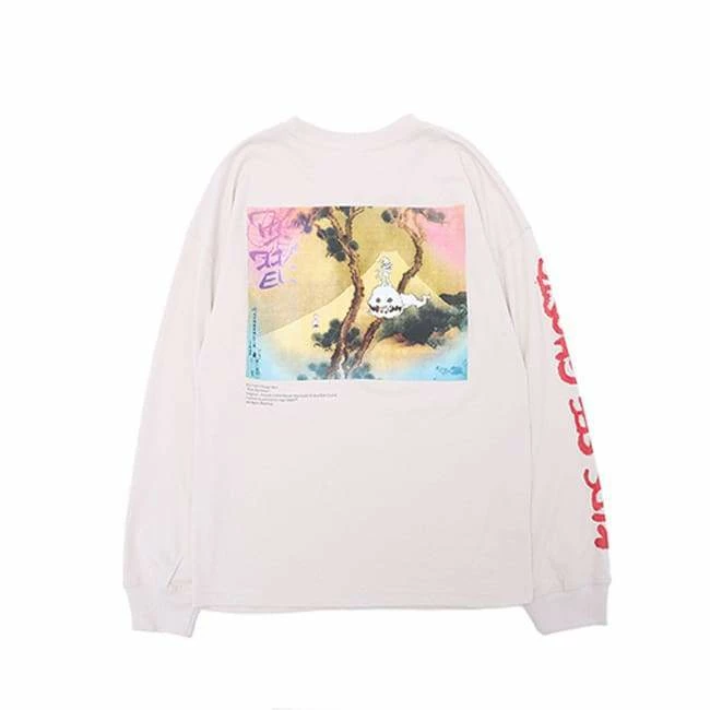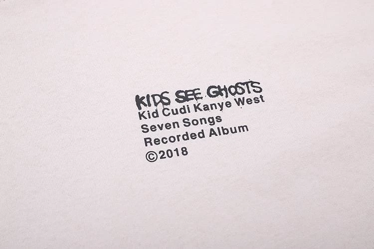 Celebrate Kids See Ghosts, a collaborative project from Kanye West and Kid Cudi. This t-shirt features the iconic album art on the back, the album name on the long sleeve and a smaller logo on the front giving this t-shirt a iconic look.