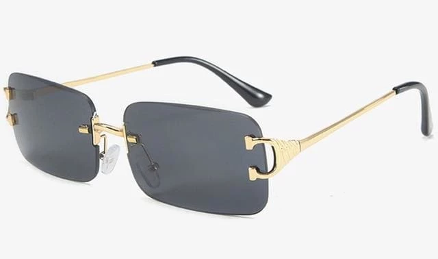 Our Largeย Square Rimless Sunglassesย are a summer must have this year. Featuring a rectangle minimalist style look, thin metal gold frame and 90’s inspired tinted lens. Get the hiphop streetwear look.ย