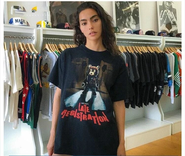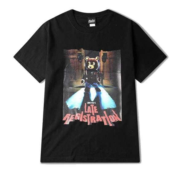 Celebrate the legendary Late Registration album by Kanye West with this album art tee which features yeezys iconic bear which was often depicted with his early music. This is the ultimate top for early 2000s rap fans of Ye.