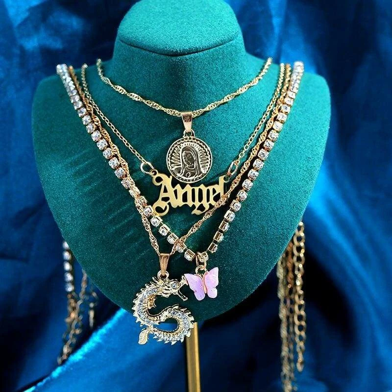 Layering your necklaces is in right now and with the Angel Multilayer Necklace Set you’ll be enhancing any outfit! You’ll recieve 4 different necklaces and chains all handpicked to compliment each other and give you a unquie look!