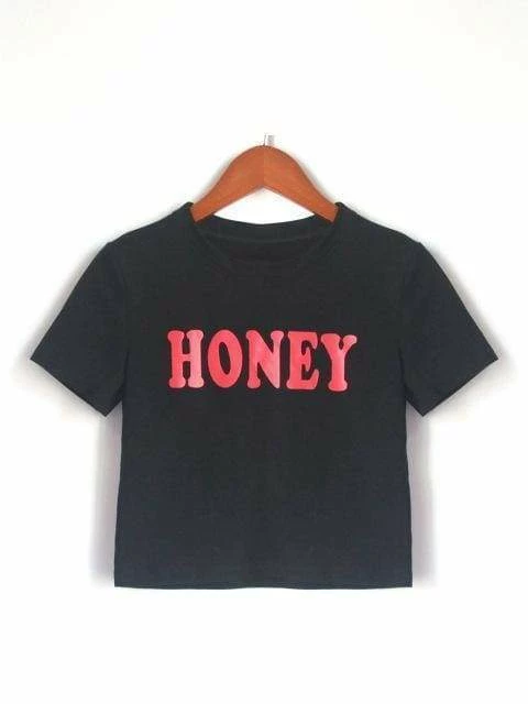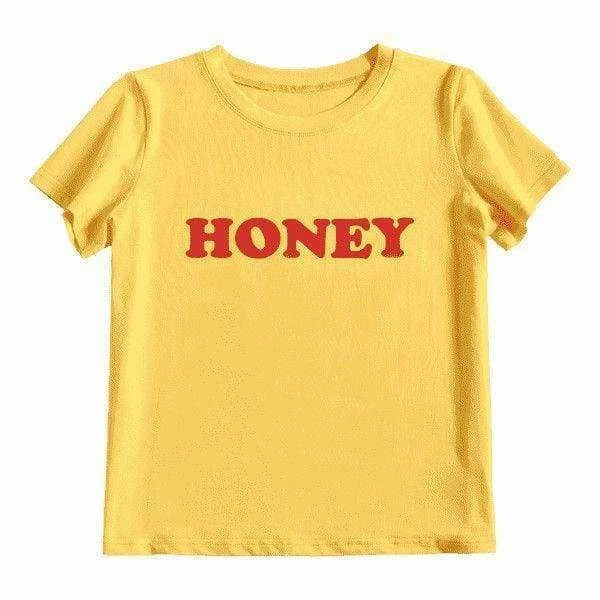 Look sweet in our Honey slogan tee, featuring a crew neckline and ‘Honey’ graphic across the front. Choose from yellow, black or pink and pair with some jeans for a look that defines sass.ย
