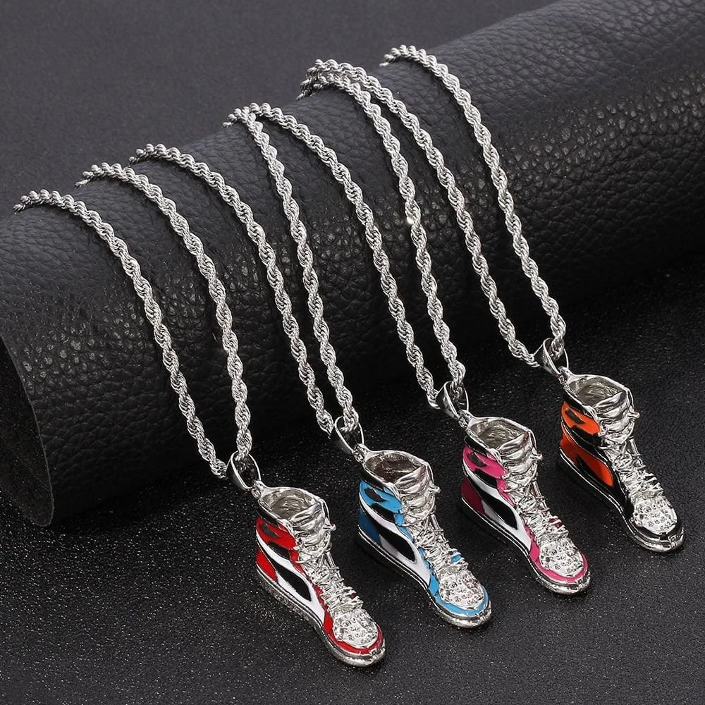 The Jordan 1 trainer have become a iconic symbol of american fashion and have transcended basketball. Our Jordan 1 Pendant Chain is available in multiple colorways and features a iced out silver look on a premium 50CM chain.ย