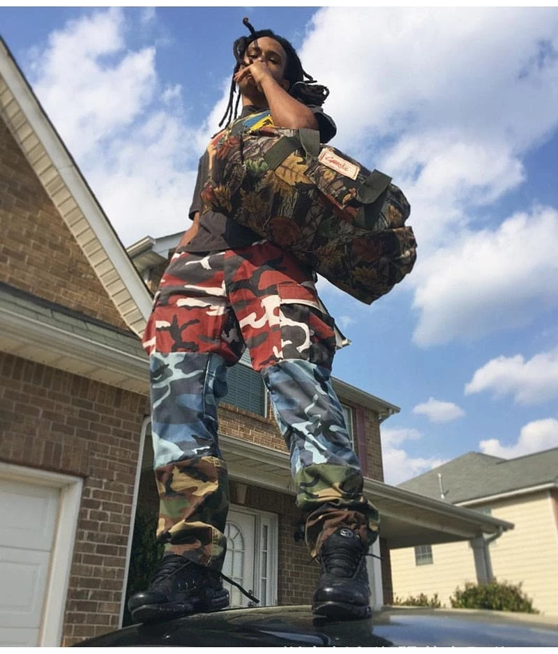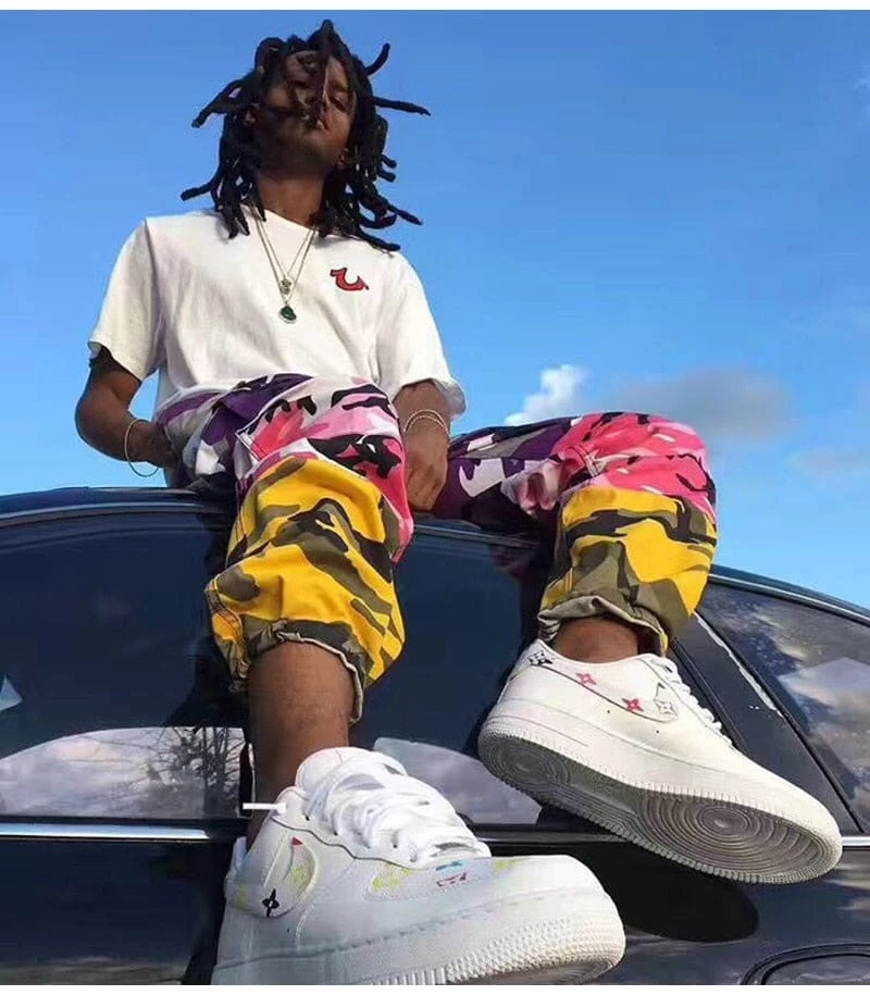 Forget the camouflage, make your trousers the talking point of your outfit in our triple colour pants. Featuring classic cargo pockets down the side and an adjustable cuffed bottom. Choose from 5 colour ways and team with a plain tee for an insta worthy look.