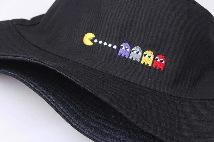 Festival season or not, our Pac-Man Bucket Hat is an absolute must have. This style features a classic black fabric with a Pac-Man stitched logo. Pair it with one of our vintage pieces for an old skool vibe.