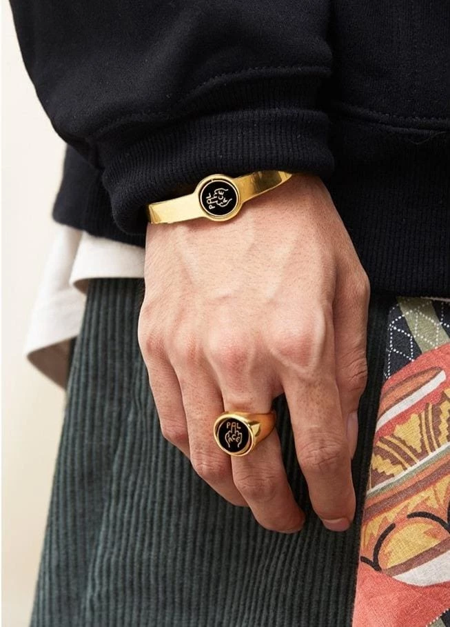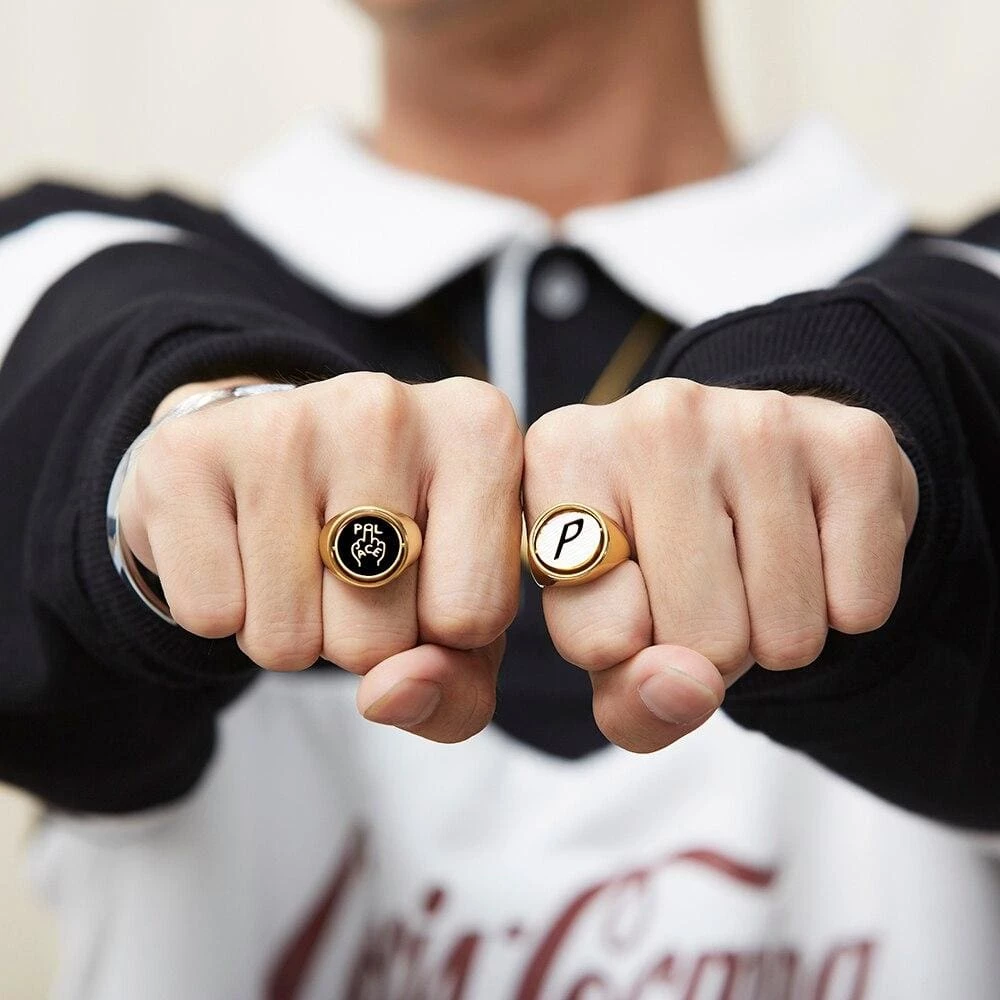 Get the ultimate streetwear jewelry with the Palace Flip P Gold Ring. With a signet ring style construction it features a truly unique flip design so you can have the P or the Middle finger palace look. Palace is one of the stand out skateboarding brands that come to have serious influence on the streetwear scene.