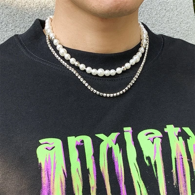 SKU: streetgarm-6721960280163 Categories: ACCESSORIES, Jewellery, MEN'S, NEW, NEW IN Tag: Pearl Necklace Rhinestone Chain Set