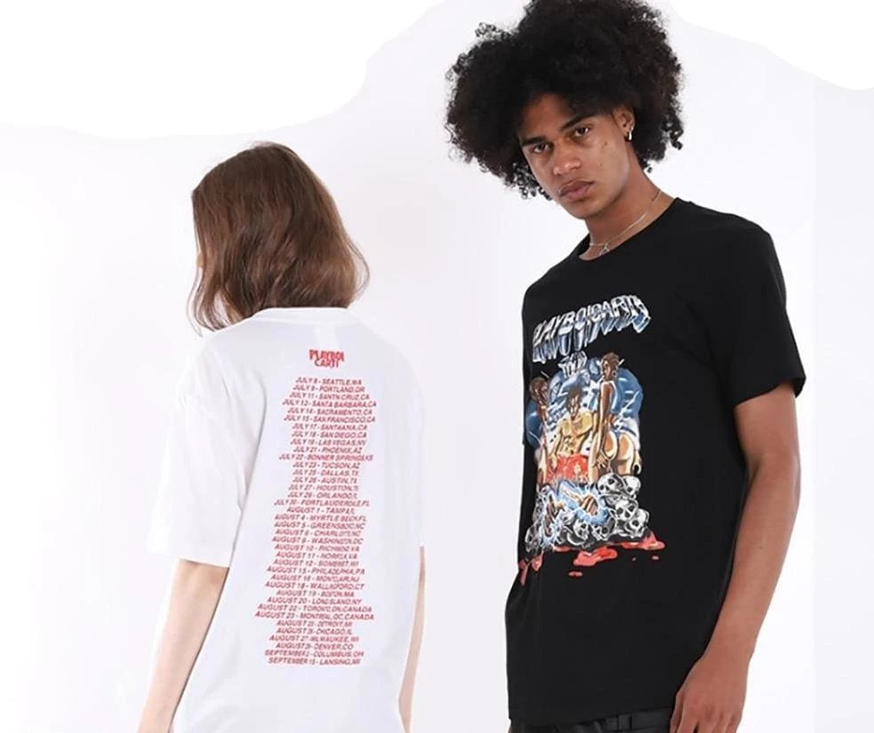 Secure the iconic Playboi Carti look with this vintage style graphic tour merch tee. Featuring all the dates of his recent tour printed on the back with the front design featuring the rappers unique style.ย