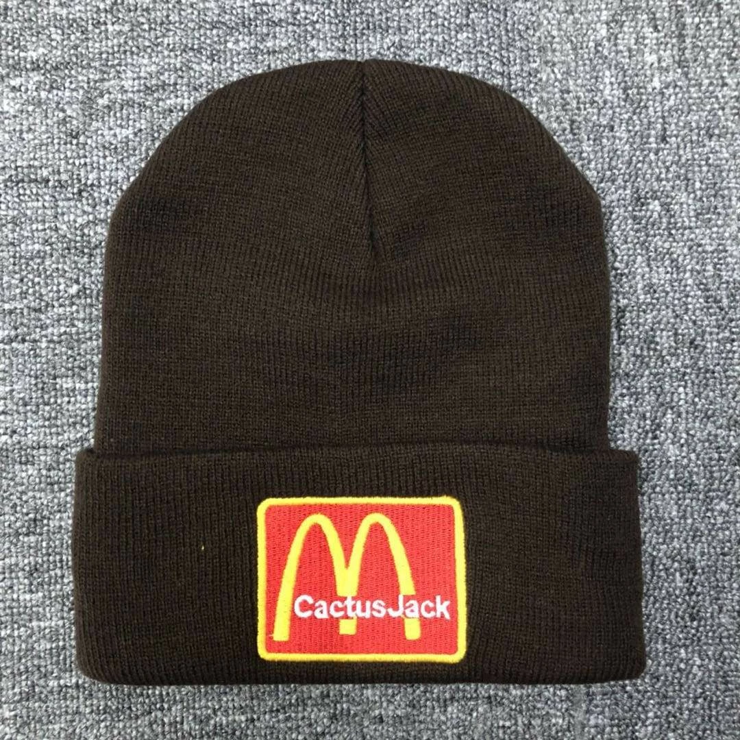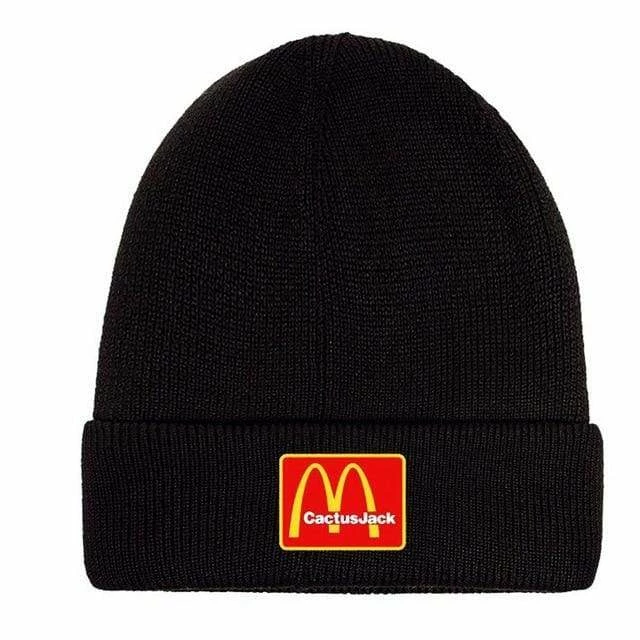 Get the Travis Scott Mc Donalds Look with the Travis Scott Cactus Jack Mc Donalds Beanie featuring custom embroidery with the famous phrase ‘im loving it’ on the back! Avaible in Brown or Black.