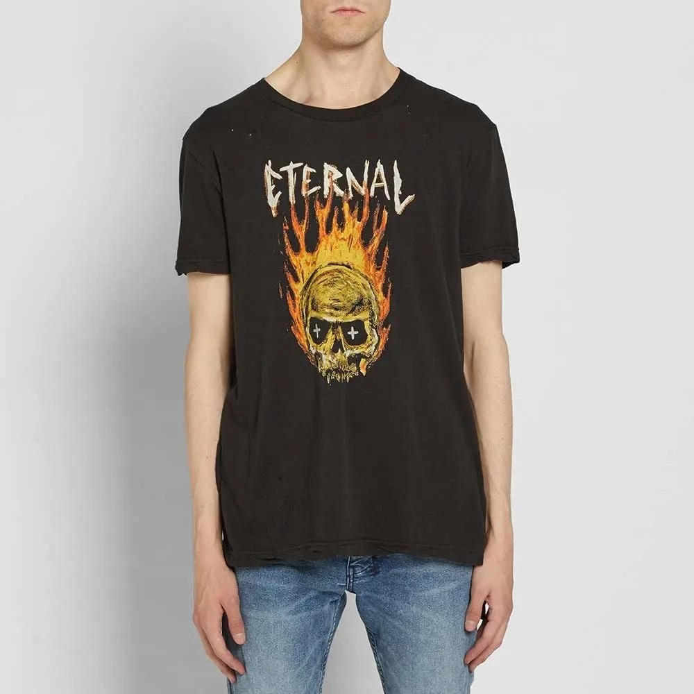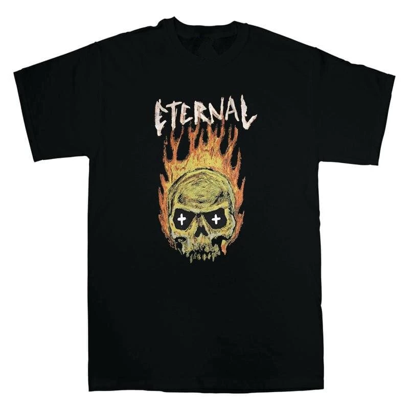 Secure a minimalist look with this Ksubi X Travis Scott collaboration! The Travis Scott Hothead Eternal T-Shirt is a loose fit premium black tee that features a unique flaming skull design. The Original design echos Cactus Jacks own personality.