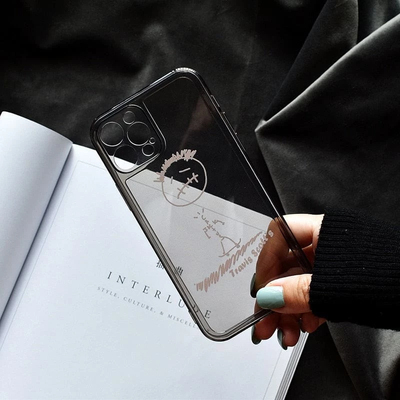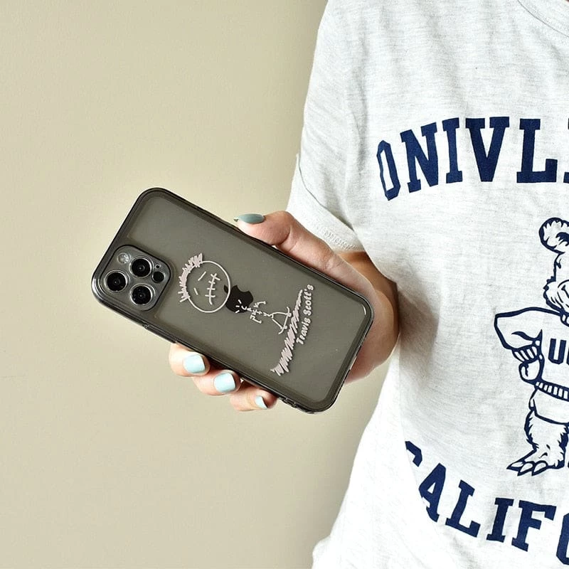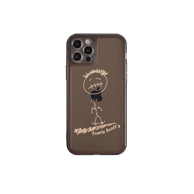 Our Travis Scott Skateboard Iphone Case is a soft silicon transparent protective case designed to perfectly fit most iphone models and give your phone the Travis Scott look. The design features a cactus jack face and stick man on a skateboard.ย