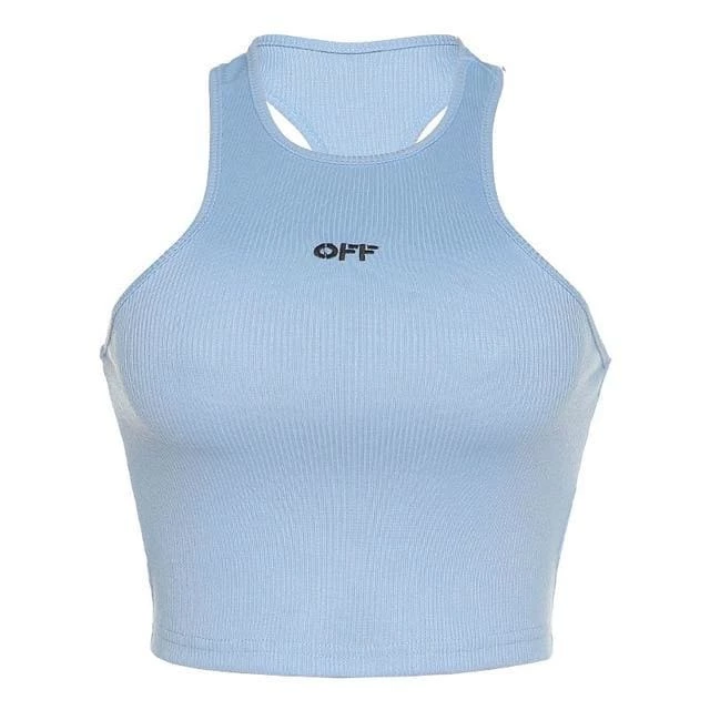 Secure the Virgil Abloh look with this Off White inspired crop top. With its minimalist design feautring “OFF” embroidery this top comes in a range of stylish colorways! Get a streetwear look today with the “OFF” White Sleeveless Crop Top.