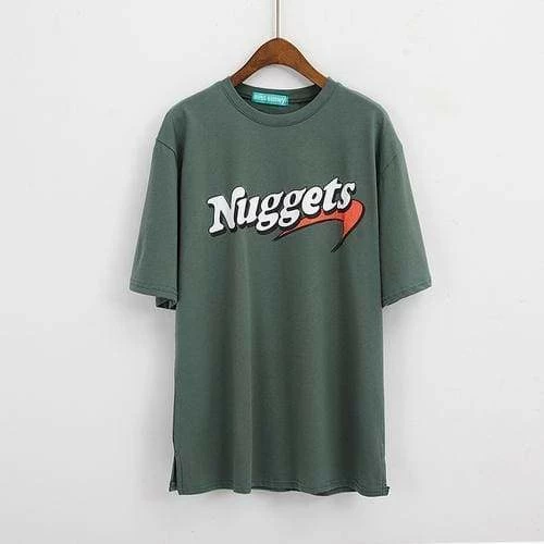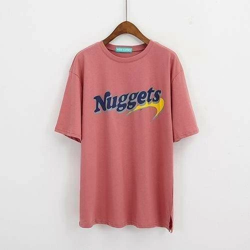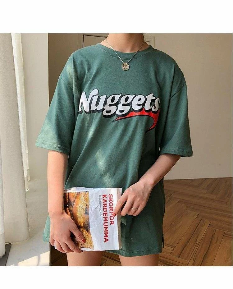 Live the nugg life in our oversized nuggets t-shirt. Choose from black, green, pink or white and wear oversized as a t-shirt dress for a cute casual vibe. This will be a perfect addition to your urban clothing collection.