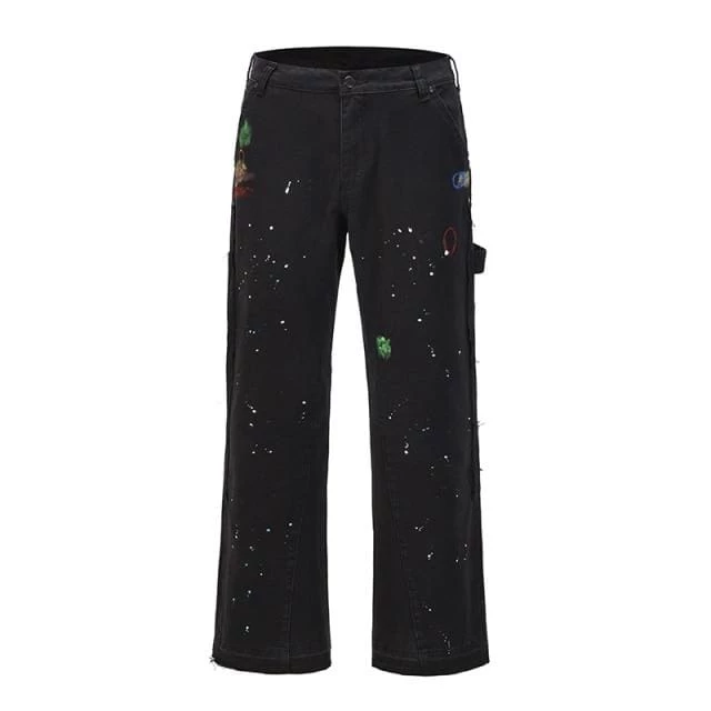 SKU: streetgarm-6642858852451 Categories: Jeans, MEN'S, NEW, NEW IN Tag: Painted Patchwork Straight Leg Jeans