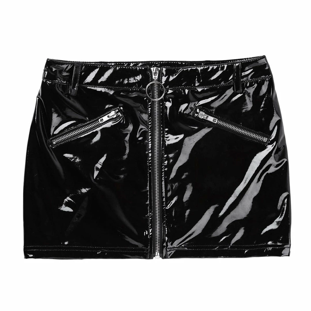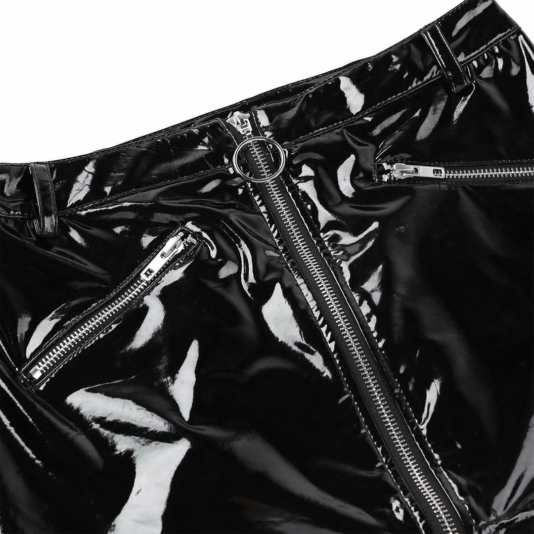 Stand out in our high waist glossy PVC mini skirt. Available in white, black, pink and red with a ring pull zip detailing, this skirt will give you a killer waist.