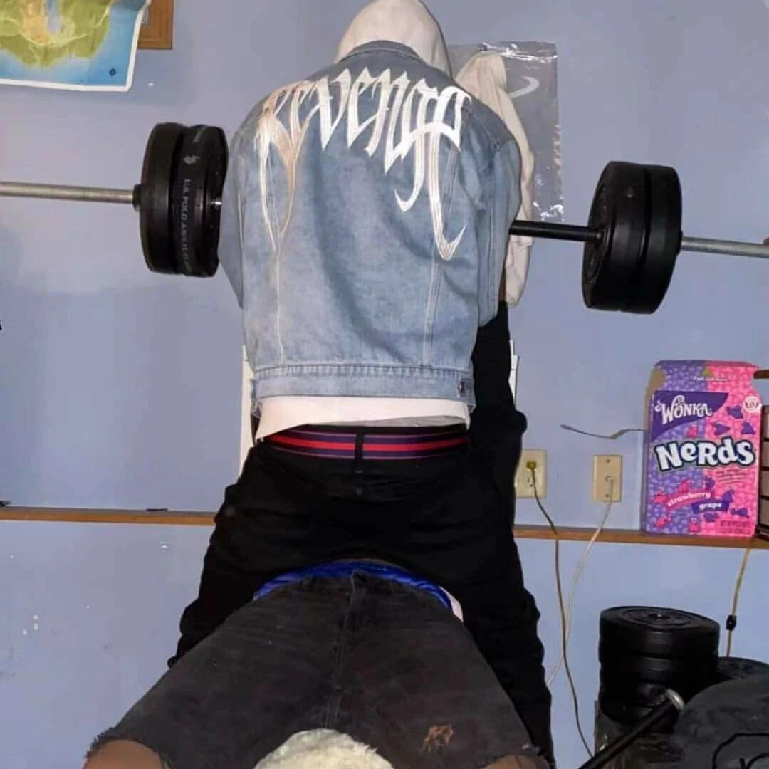 Revenge is in order with the ย Revenge Xxxtentacion Denim Jacket! This the perfect Xxxtentacion item, featuring the iconic revenge logo embroidered on the back, its available in a classic blue denim and black. This is a must have limited Xxxtentacion streetwear merch.ย