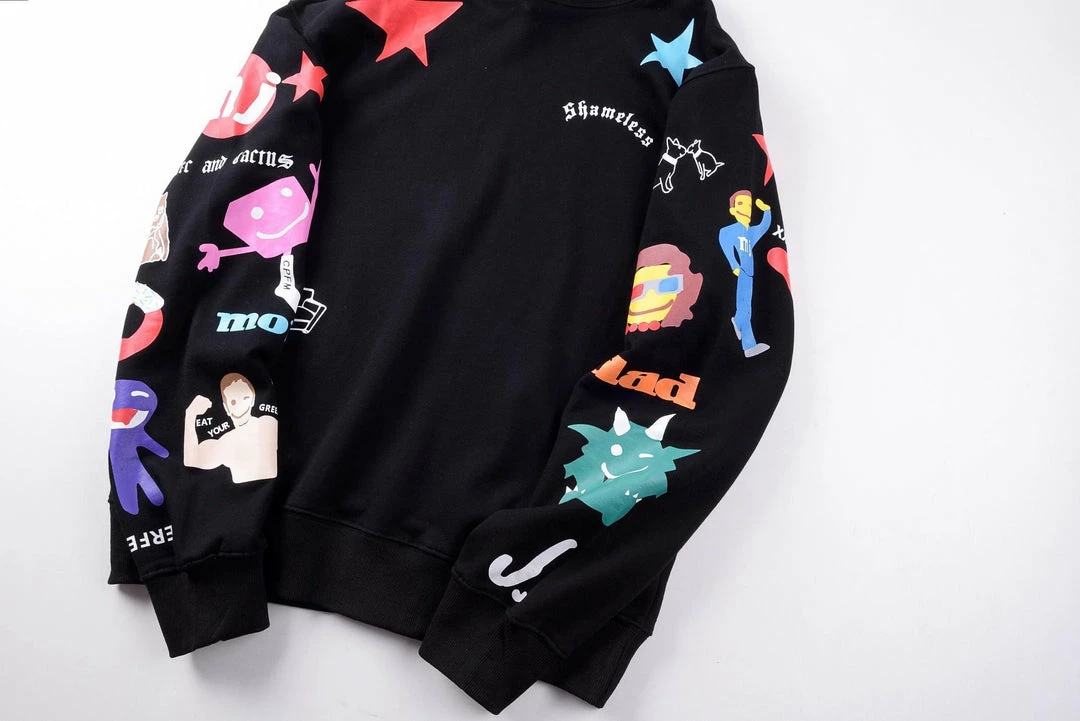 The CPFM Tattoo Hoodie is a must have piece from the Cactus Plant Flea Market. Available in black and brown the design features prints all over the sleeves of various CPFM symbols hence the the Tattoo hoodie name. Secure the “Shameless” Today.