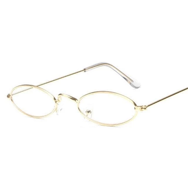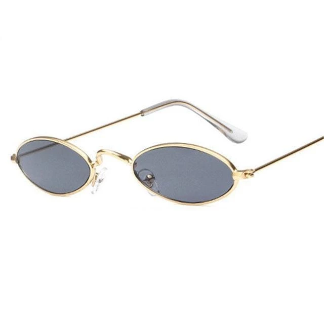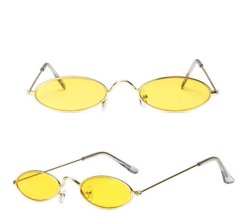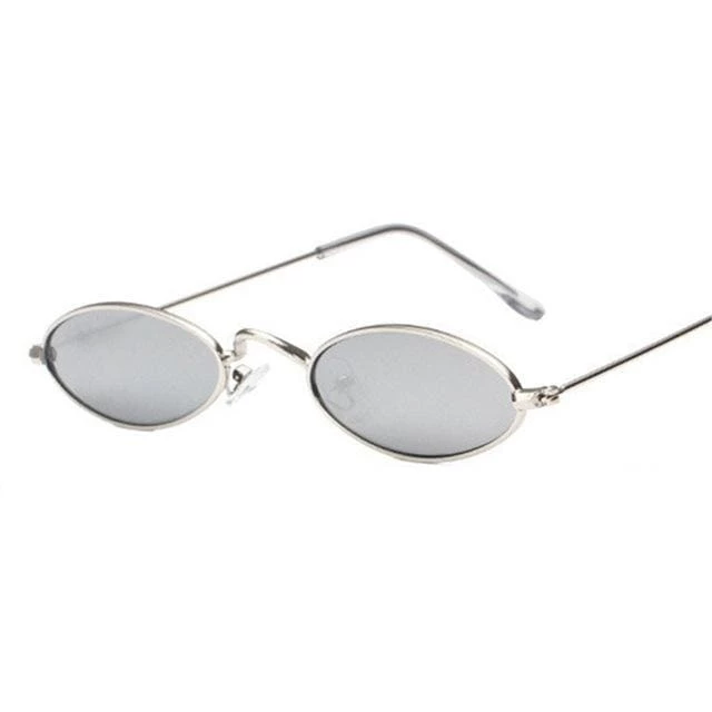 Sleek, minimalist style seen through a โ90s-inspired lens in these slim metal oval sunglasses. Featuring a slim metal frame in a shiny metal finish with color lenses, padded nose bridge and curved ear pieces.