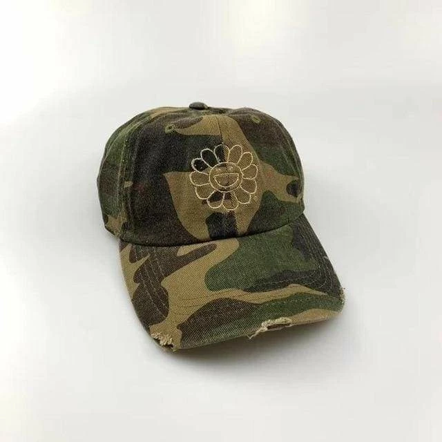 Time to catch the Takashi Murakami vibe with the this must have sunflower cap. The Takashi Murakami sunflower Cap features the iconic japananese sunflower design on front and its available in three different color ways including a unquie camo look.