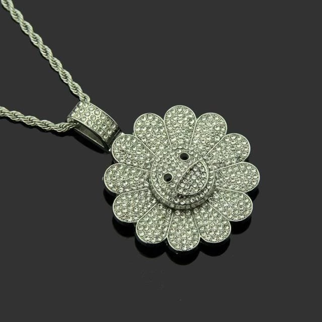 Get the famous japanese look inspired by the Takashi Murakami the designer behind the iconic sunflower. With the Takashi Murakami Sunflower Necklace you can have your very own iced out sunflower in a variety of premium metal options and colors.ย