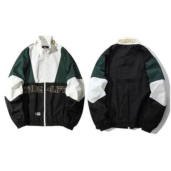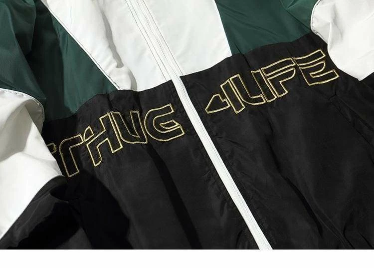 Examine our Thug Life Patchwork Track Jacket made from light weight waterproof material which is great for sports activities or simply looking good. The ‘thug Life’ phrase was famously populised by Tupac in the 90’s and still hold relevance today.ย